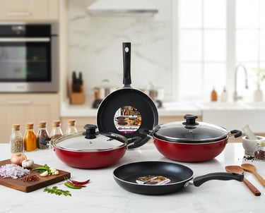We offer non-stick cookware, kadai, fry pans, appam chatty, and more.